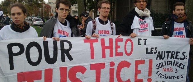 Les crimes racistes perdurent et se sont aggravés depuis l’instauration de l’état d’urgence, en particulier chez les jeunes. Nous avons également participé, avec Solidaires étudiants Paris 3 et le Comité Justice pour Théo et Tous les autres au rassemblement organisé par la famille de Théo à Bobigny, le 28 octobre dernier, qui a réuni près de 300 personnes et surtout différents comités tels que Urgence Notre Police assassine, ou encore le comité Vérité pour Yacine.